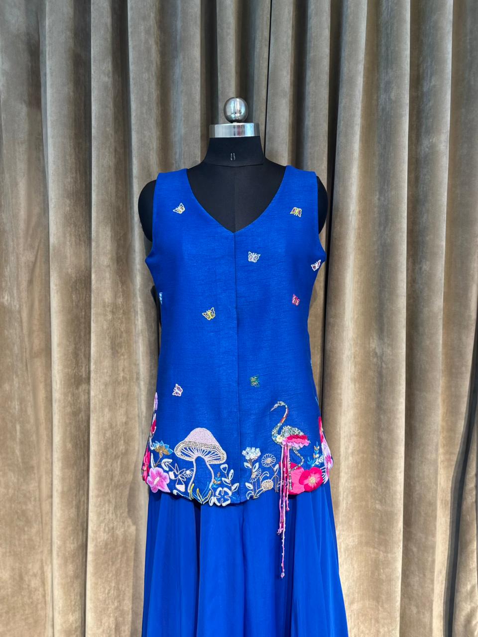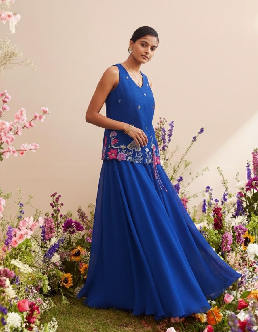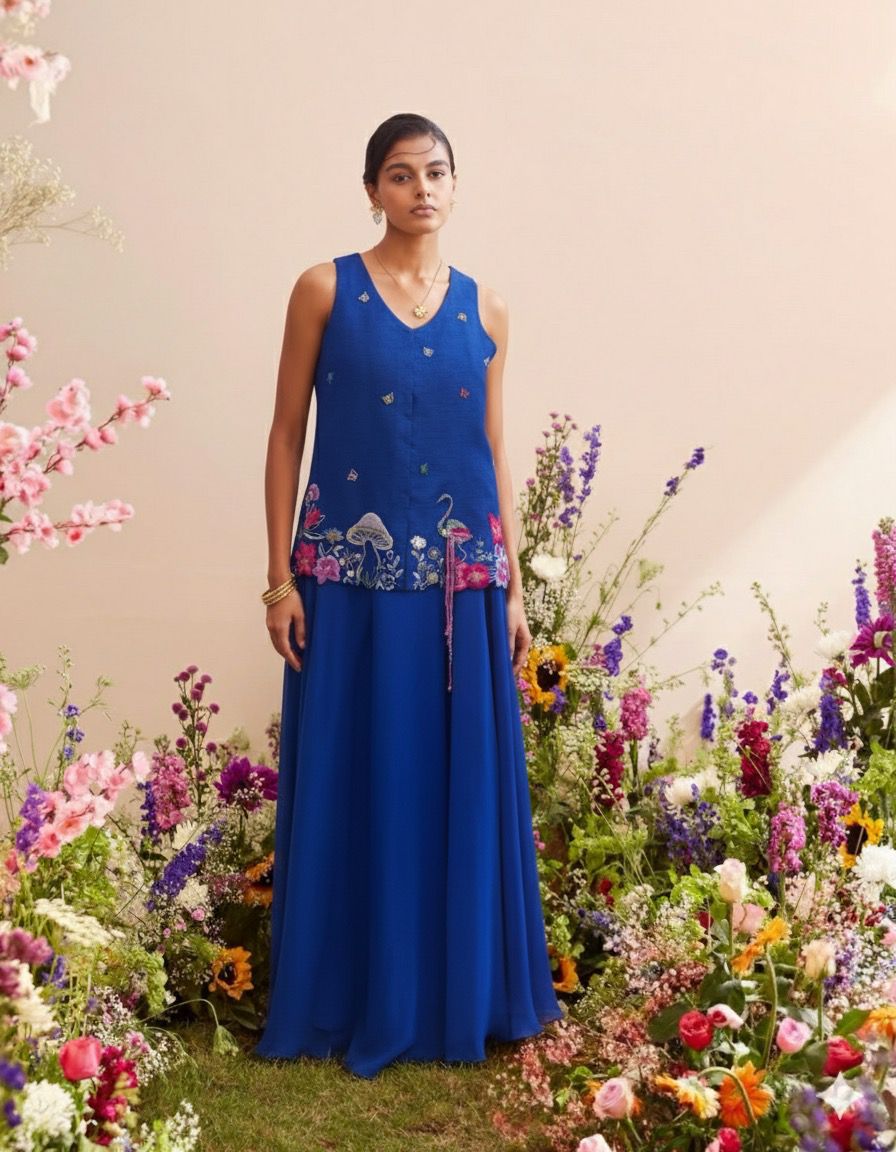 A vision of azurite elegance — the Azurite Flamingo Co-ord radiates depth, grace, and exquisite craftsmanship.